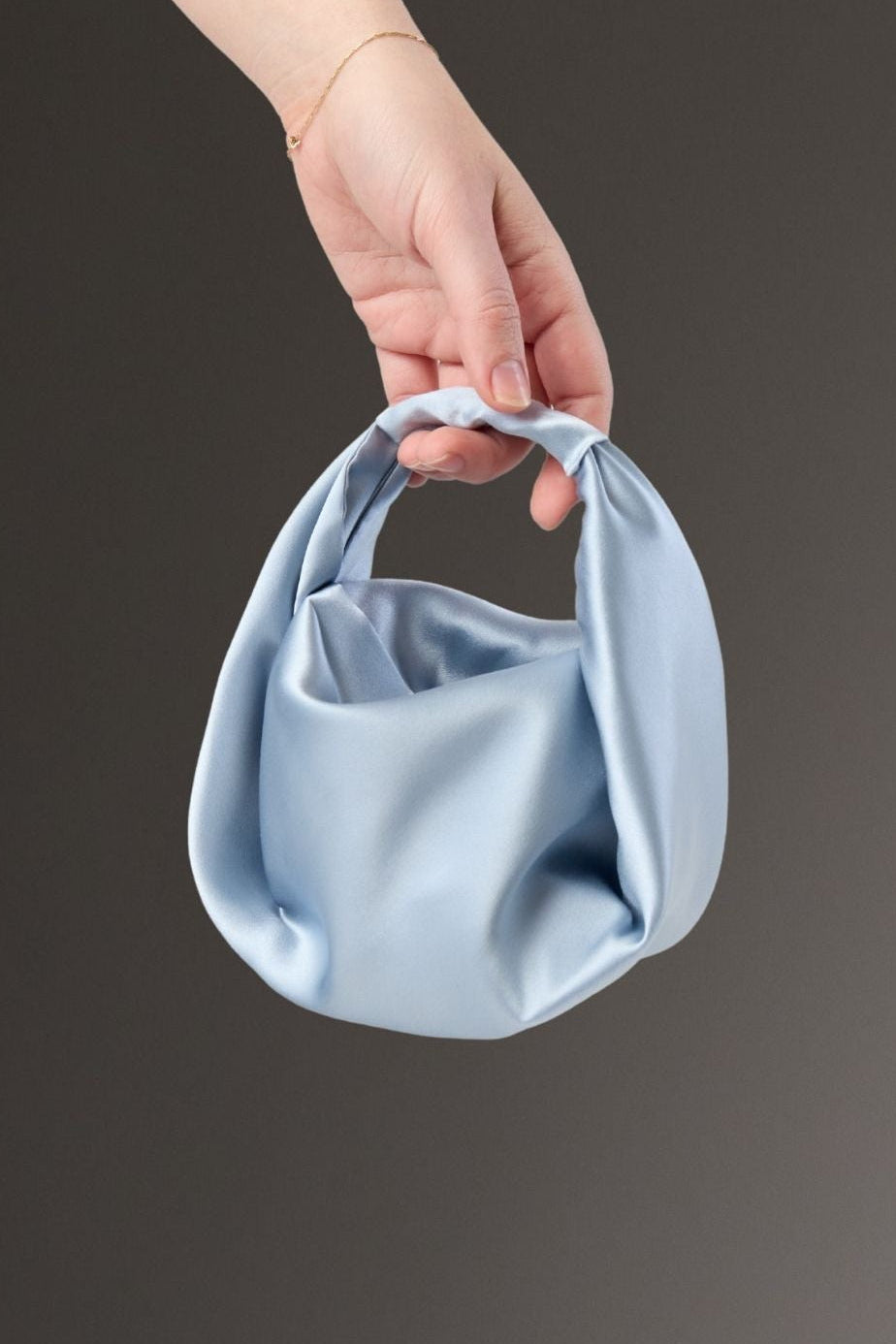 100% Silk Satin in Bluebell, with JM monogrammed in matching capital letters, approximately 1.5cm high.