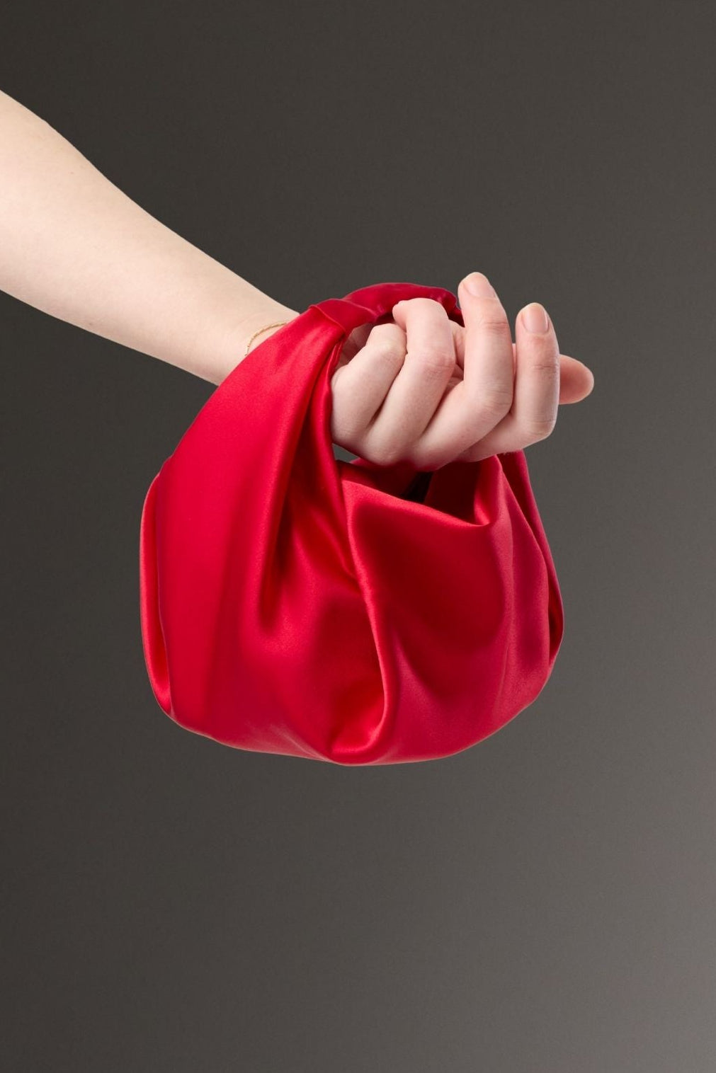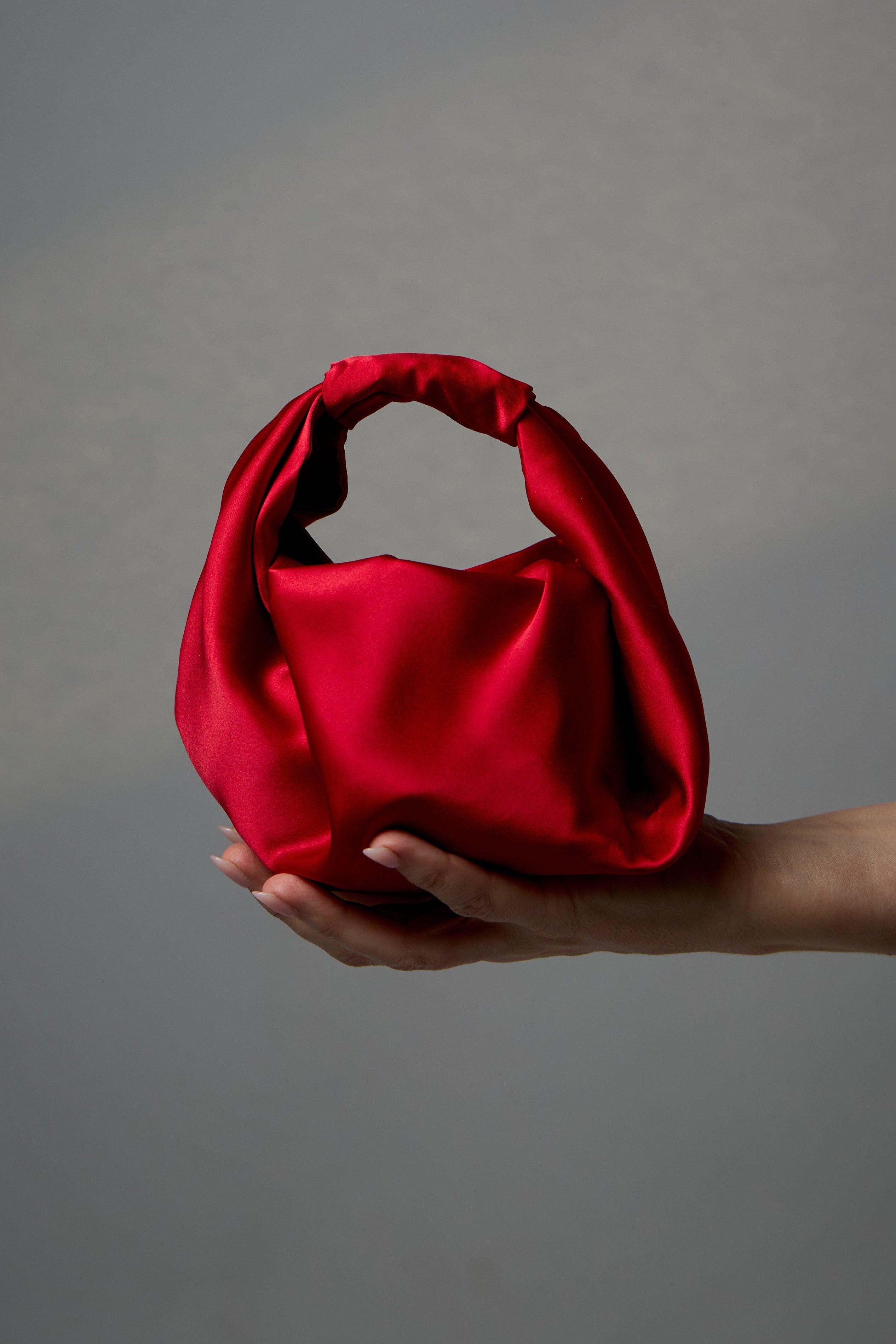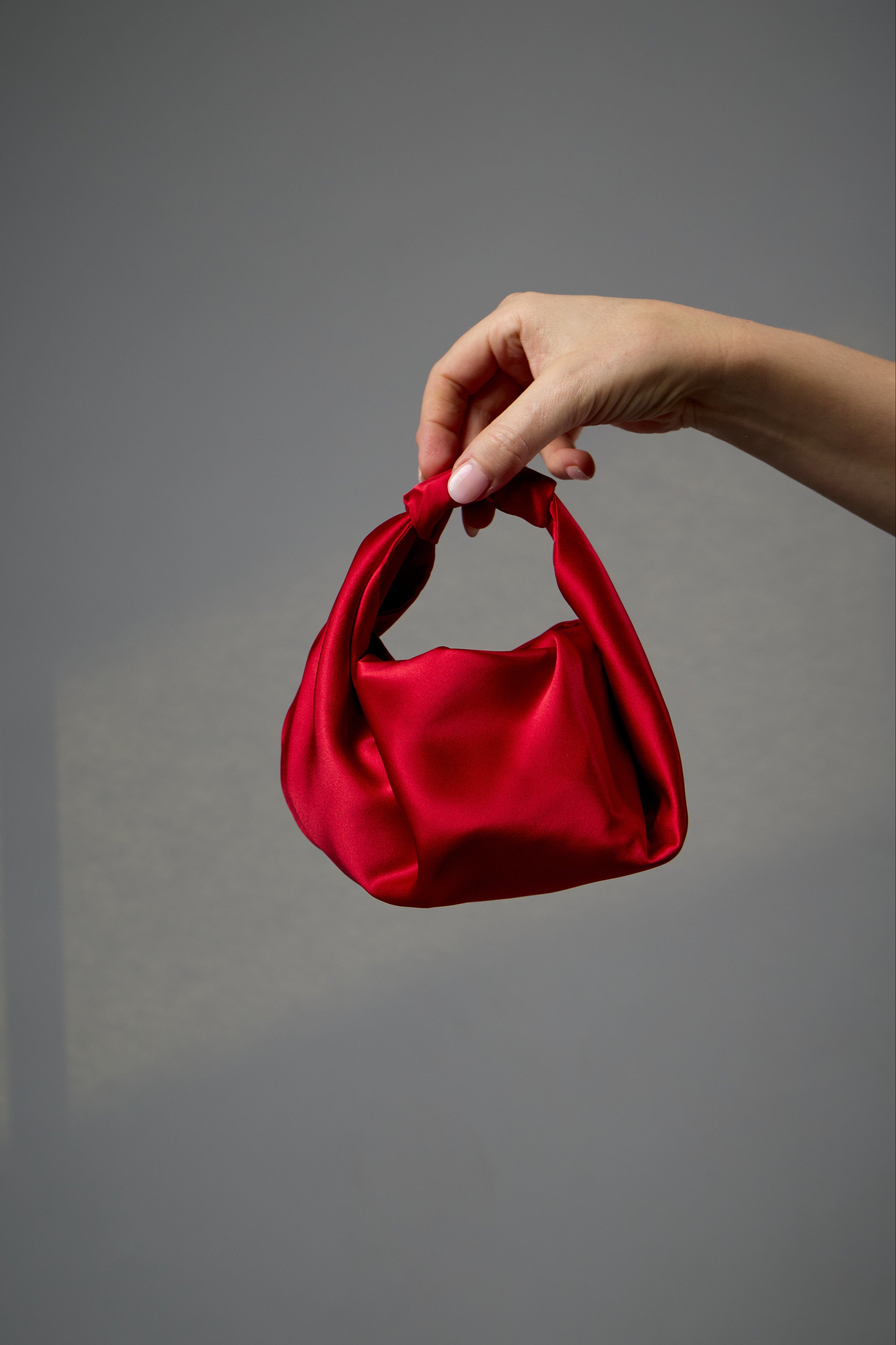 Detail: Crafted from a double layer of 100% Silk Satin in Red, with an internal double layer of 100% Raw Silk for structure. Internal self-tie straps secure the sides together if desired.